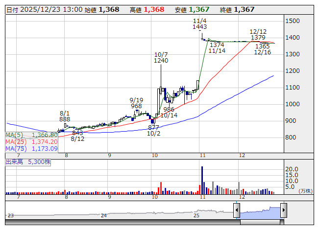 ヤスハラケミ <日足> 「株探」多機能チャートより■財務省 : 12月23日受付