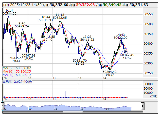【市況】15時の日経平均は59円安の5万342円、アドテストが105.62円押し下げ