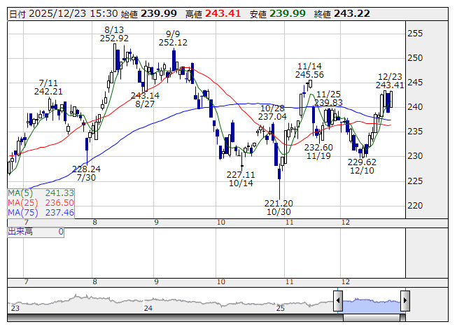 空運業 <日足> 「株探」多機能チャートより●東証33業種 値上がり: 30 業種 値下がり: 3 業種