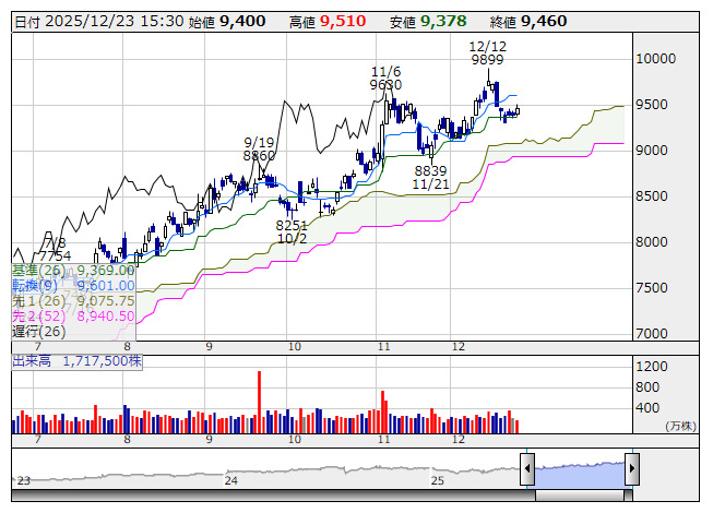 銘柄名 株価 前日比 (比率) 基準線連続下降回数