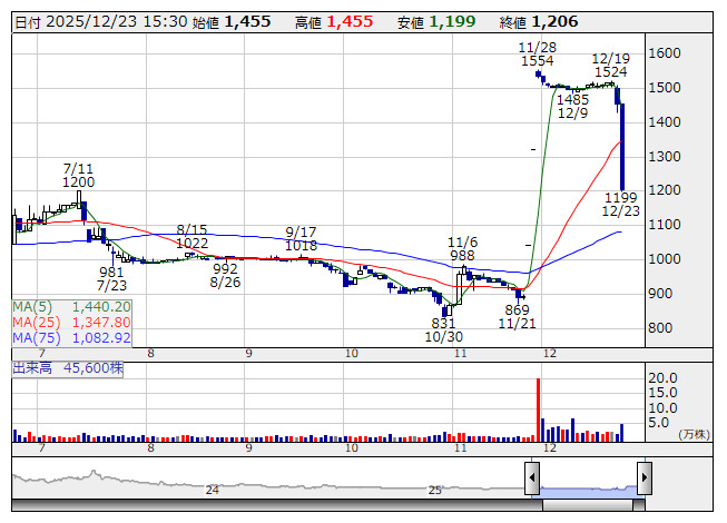 【材料】本日のランキング【値下がり率】 (12月23日)