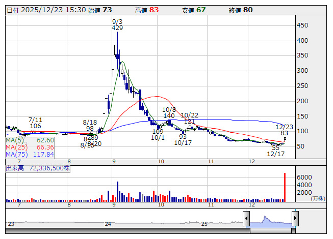 2. <7138> TORICO 東証G 25.5 394 S 第三者割当増資と暗号資産事業の新展開を材料視