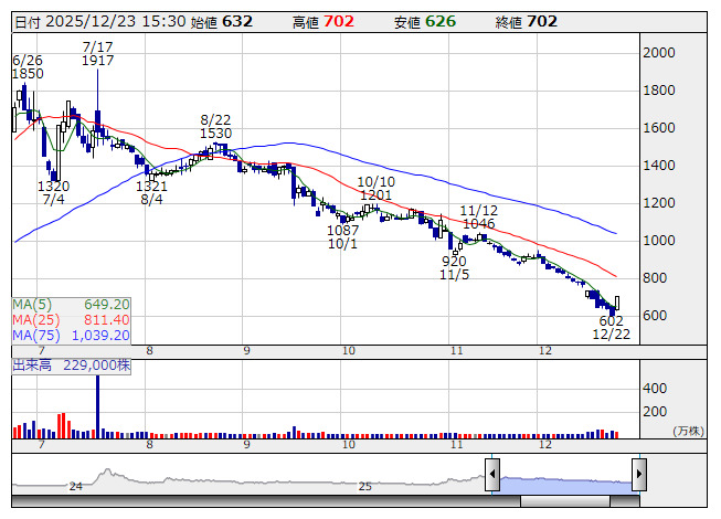 売れるG <日足> 「株探」多機能チャートより■財務省 : 12月23日受付