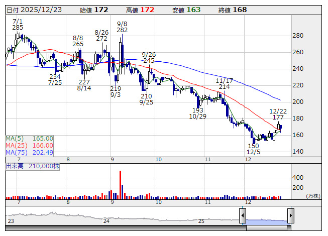 イメージワン <2667> 215 +47 (+28.0%) 427,100 ( 9,225) 354,900 ( 7,630)