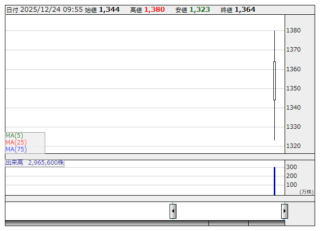 2025年12月24日09時55分 【材料】【IPO】フツパー<478A>---初値は1344円(公開価格1020円) フツパー <日足> 「株探」多機能チャートより フツパー<478A>の初値は公開価格を31.8%上回る1344円となった。初値形成時の出来高は192万3300株だった。 《CN》 提供:フィスコ