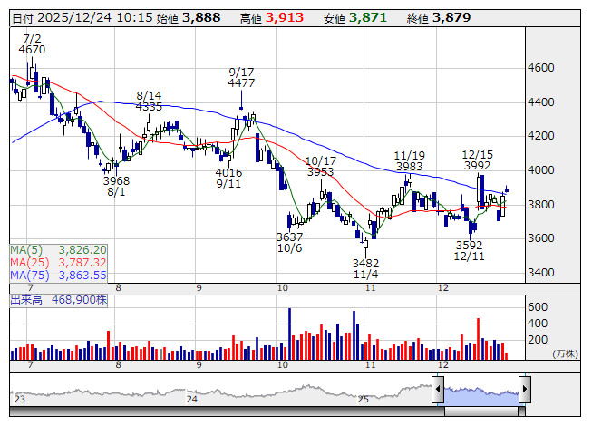 神戸物産 <日足> 「株探」多機能チャートより