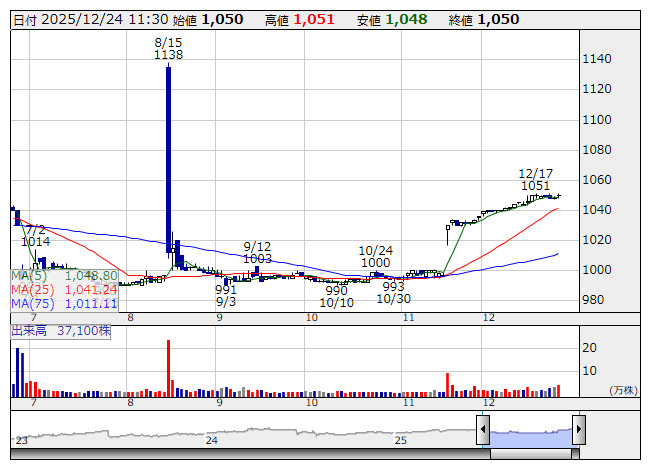 BRUNO <日足> 「株探」多機能チャートより■要約