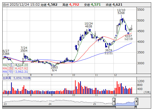 2025年12月24日15時02分 【材料】安川電機---大幅反発、ベトナムでインバーター向け基板工場を新設と 安川電 <日足> 「株探」多機能チャートより 安川電機<6506>は大幅反発。ベトナムにおいて、主力製品であるインバーター向けの電子基板工場を新設すると一部で報じられている。同社が東南アジアに生産拠点を設けるのは初めてとなるもよう。投資額は約55億円で26年4月の量産開始を目指しているようだ。データセンター需要の増加などで電力消費を削減できるインバーターの需要が高まっており、日本と中国に次ぐ第3の生産拠点として、欧米やインド工場に部材を供給する方針。 《HM》 提供:フィスコ