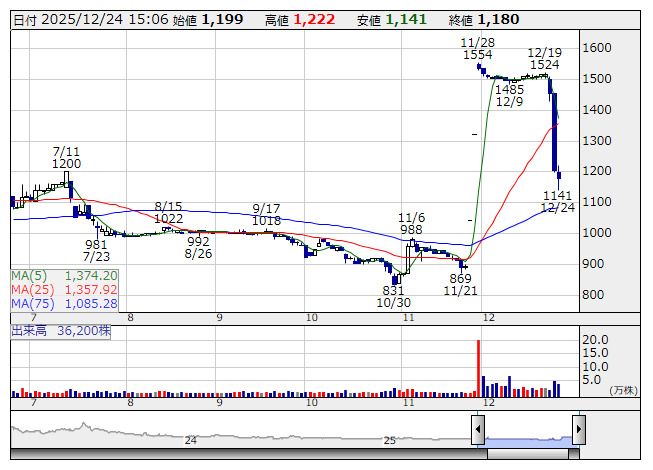 プライムスト <日足> 「株探」多機能チャートより■財務省 : 12月24日受付
