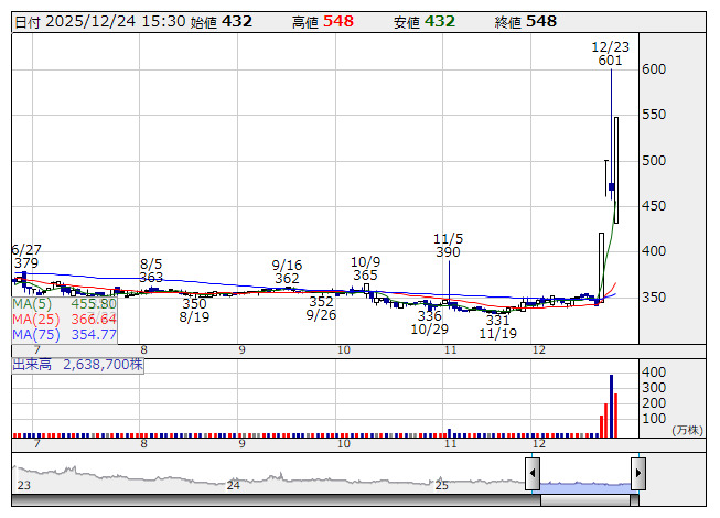 【材料】本日のランキング【寄付からの値上がり率】 (12月24日)