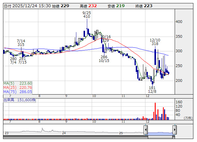 アクアライン <日足> 「株探」多機能チャートより■財務省 : 12月24日受付