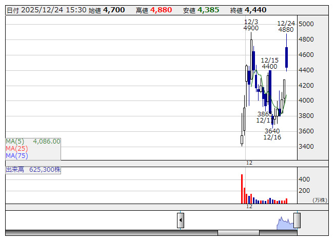 ヒュマメイド <日足> 「株探」多機能チャートより■財務省 : 12月24日受付