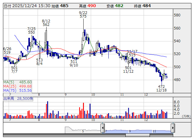 メディックス <日足> 「株探」多機能チャートより■財務省 : 12月24日受付