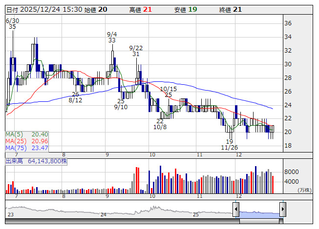 オンコセラピ <日足> 「株探」多機能チャートより■財務省 : 12月24日受付