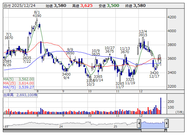 23日は丸三証券の目標株価引き上げで強い動きに。