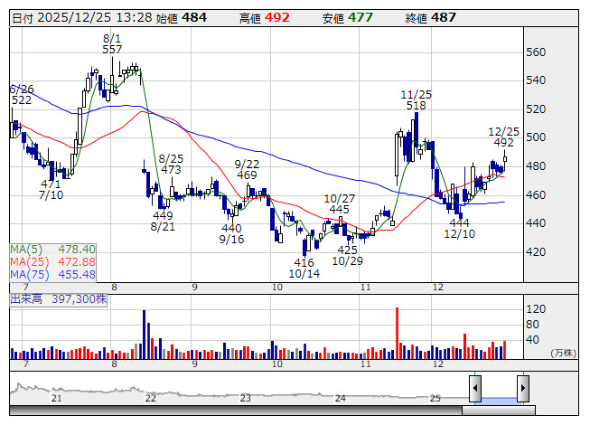 4053>は反発。ソフトウェア受託開発事業を行うMIXENSEの子会社化、並びに、オンライン日本語スピーキングテストとオンライン日本語会話研修の開発・運営を行うバベルメソッドの持分法適用会社化を発表している。ともに株式譲渡実行日は26年1月5日を予定している。MIXENSEの25年3月期営業利益は0.9億円の水準であり、顧客基盤の相互連携によるクロスセル機会創出などのシナジーも想定。積極的な業容拡大策をポジティブ視へ。