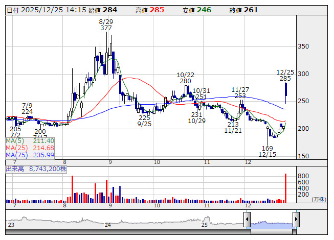 ■出来高変化率上位 [12月25日 13:32 現在]