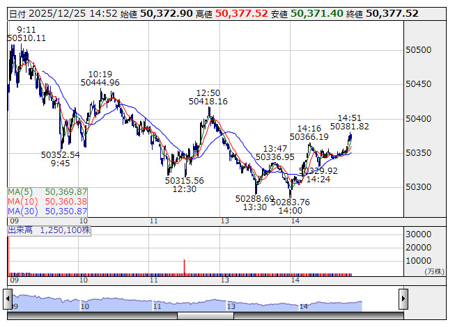 日経平均は小動きとなっている。今日は米市場はじめ、クリスマスで多くの海外市場が休場となる。
