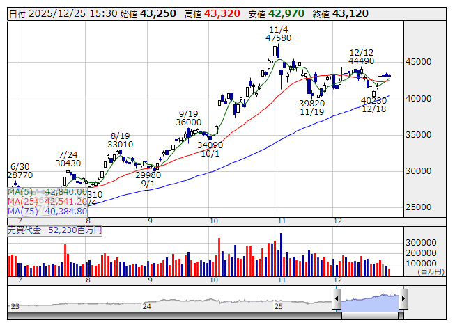 日経レバ <日足> 売買代金 「株探」多機能チャートより売買代金