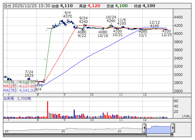 芦森工 <日足> 「株探」多機能チャートより■財務省 : 12月25日受付