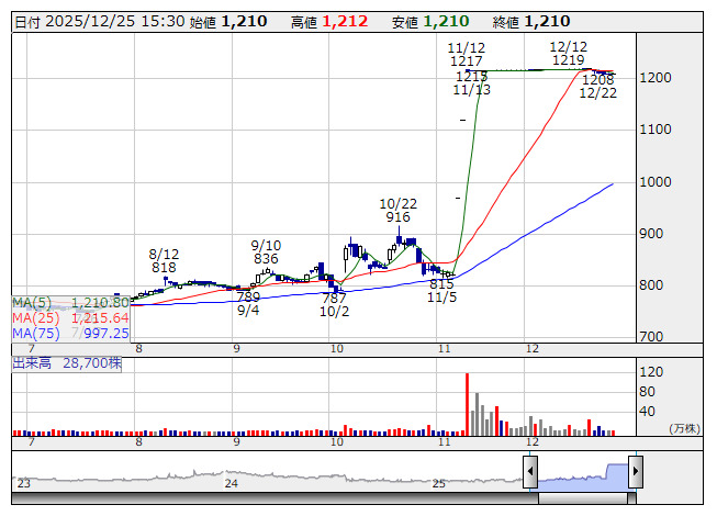 セントケア <日足> 「株探」多機能チャートより■財務省 : 12月25日受付