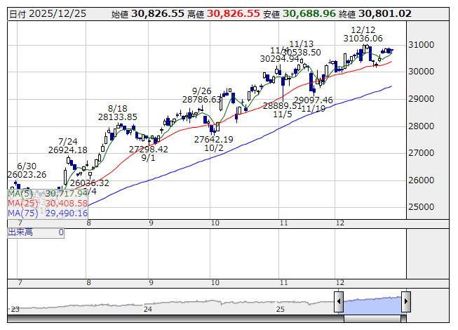 2025年12月26日08時46分 【市況】JPX日経400先物:26日寄り付き=5ポイント高、3万890ポイント JPX日経400 <日足> 「株探」多機能チャートより 26日8時45分、JPX日経インデックス400先物期近2026年3月限は前日清算値比5ポイント高の3万890ポイントで寄り付いた。前日のJPX日経インデックス400の現物終値3万801.02ポイントに対しては88.98ポイント高。 株探ニュース