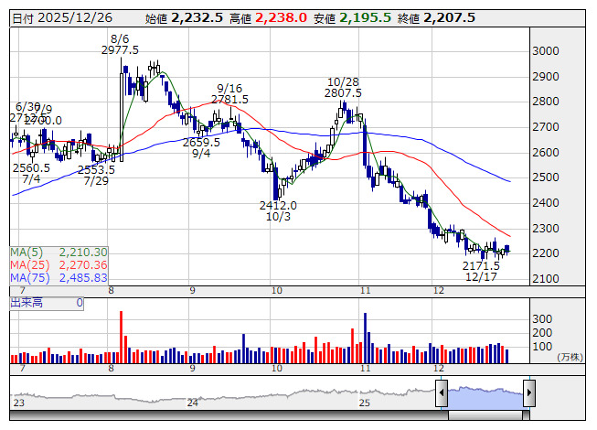 25日に決算を発表。「上期経常は一転5%増益で上振れ着地、今期配当を40円増額修正」が好感された。