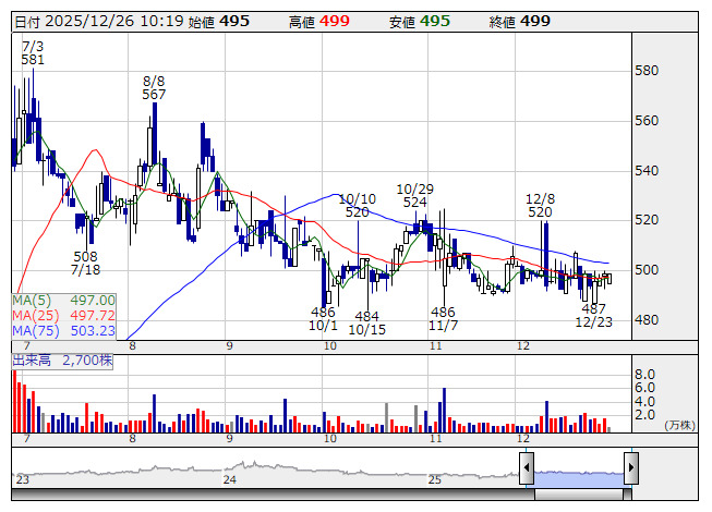 リーダー電子 <日足> 「株探」多機能チャートより■財務省 : 12月26日受付