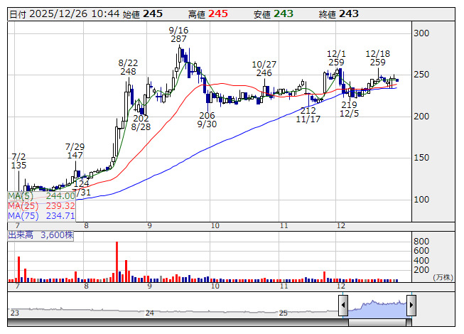 アイフリーク <日足> 「株探」多機能チャートより■財務省 : 12月26日受付