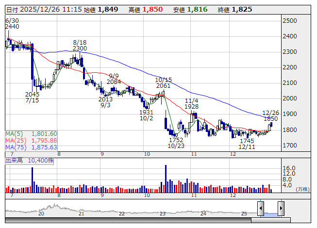 サーバワクス <日足> 「株探」多機能チャートより■財務省 : 12月26日受付