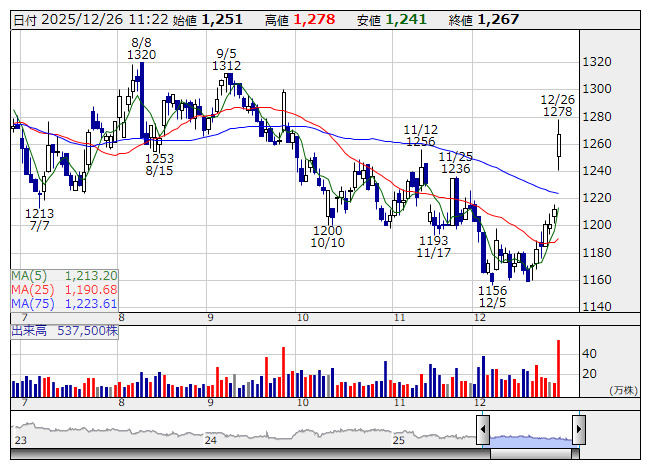 エイベックス <日足> 「株探」多機能チャートより