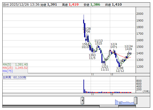 サイバSOL <日足> 「株探」多機能チャートより■財務省 : 12月26日受付