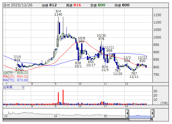 ダイワ通信 <日足> 「株探」多機能チャートより