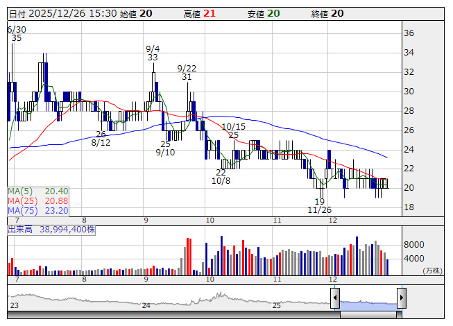 オンコセラピ <日足> 「株探」多機能チャートより■財務省 : 12月26日受付