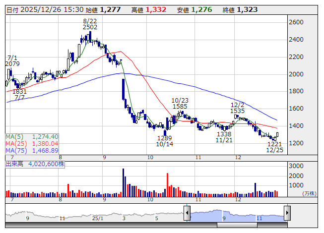 タイミー <日足> 「株探」多機能チャートより■財務省 : 12月26日受付