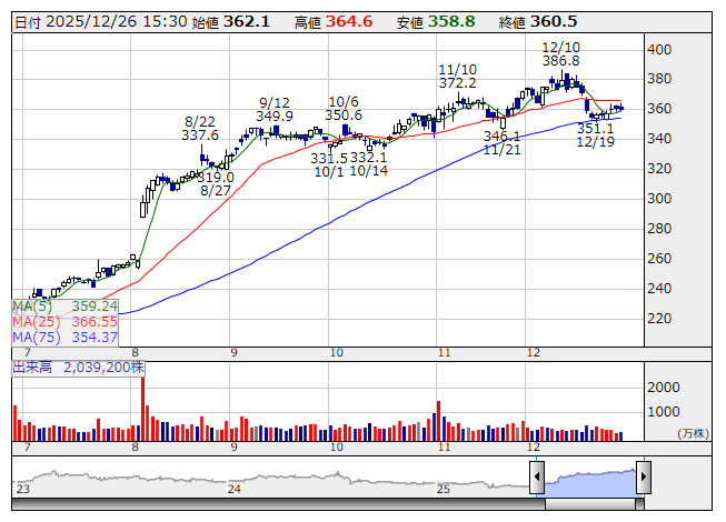 NTN <日足> 「株探」多機能チャートより少額資金で投資できる銘柄に対する個人投資家の関心は高い。SBI証券、楽天証券、GMOクリック証券のネット証券3社が株式の売買手数料無料化を打ち出すなど、投資家は手数料を気にせずに売買することが可能となっている。最低投資金額(株価×売買単位)が低位の銘柄は、同じ予算でも高株価の銘柄に比べ株数を多く購入できるほか、買い付けや売却の時期を分散できるなどのメリットがある。ただ、業績低迷が続いている企業も数多くあることには注意が必要だ。