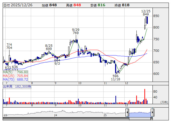 四半期業績が好調だったYE DIGITAL <2354> [東証S]、ミタチ産業 <3321> [東証S]、クスリのアオキホールディングス <3549> [東証P]、業績上方修正を発表した三東工業社 <1788> [東証S]、マイネット <3928> [東証S]、エイベックス <7860> [東証P]は大きく値上がりした。