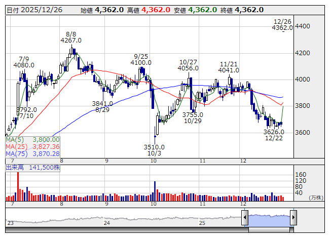 <3321> ミタチ産業 東S +4.60 12/25 上期 66.04