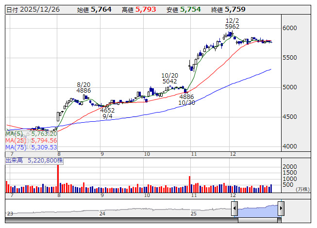 <5803> フジクラ 26901 ( 15) 17,130 -30 ( -0.2%)