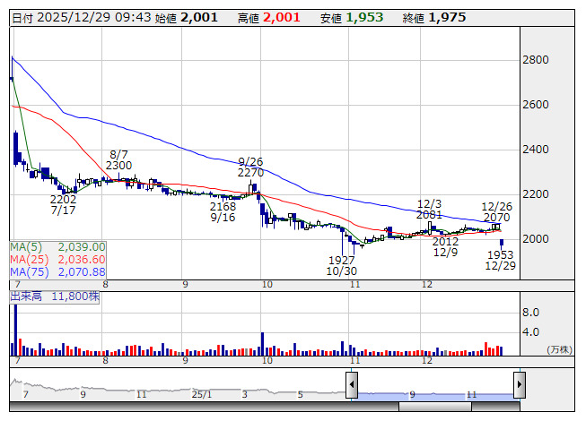 【材料】インテGは大幅安、第2四半期営業益99%減の400万円