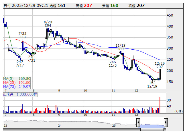 Aクリエイト <日足> 「株探」多機能チャートより