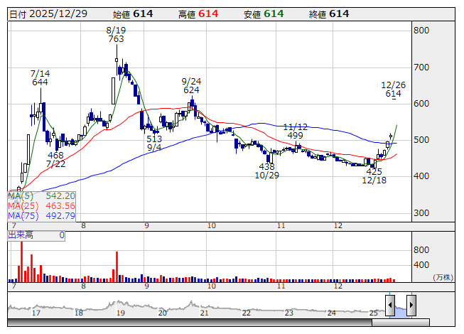 いつも <7694> [東証G] 気配 前日もストップ高。生成AI関連