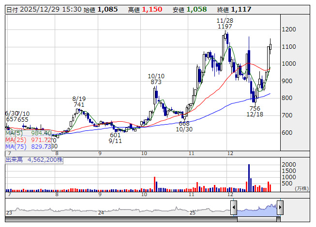 銘柄名 株価 前日比 (比率) 5日移動平均 25日移動平均