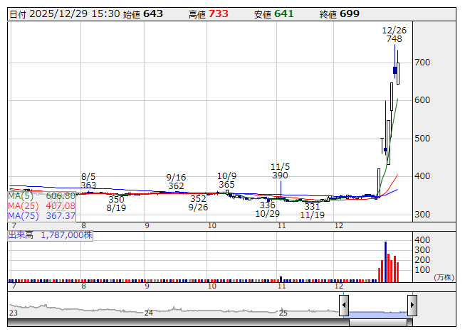 津田駒 <日足> 「株探」多機能チャートより○津田駒 <6217> [東証S]