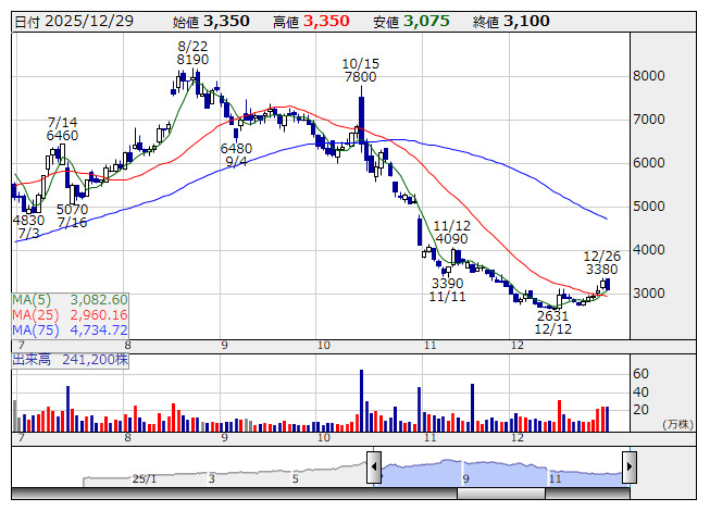 ククレブ <日足> 「株探」多機能チャートよりククレブ・アドバイザーズ<276A>は25日、不動産仲介サービスの受注を決議したと発表した。