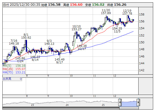 米ドル/円 <日足> 「株探」多機能チャートより米11月中古住宅販売制約指数は前月比+3.3%となった。伸びは10月+2.4%から予想以上に拡大。8月来で最大を記録した。