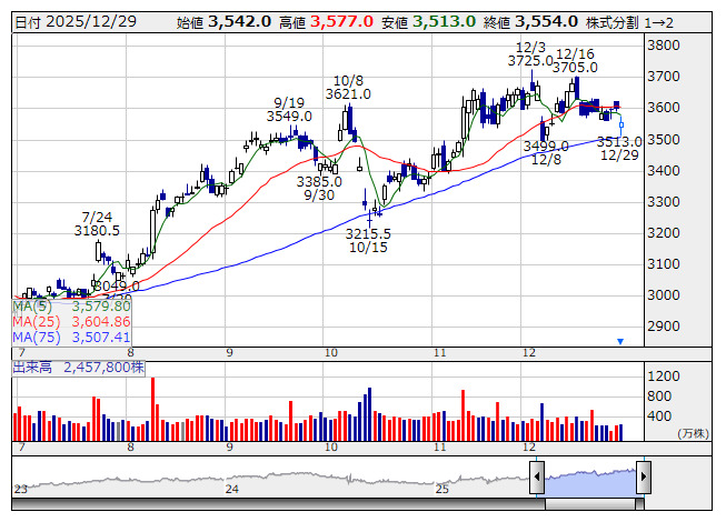 ブリヂストン <日足> 「株探」多機能チャートより(東証プライム上場 1599 銘柄対象)