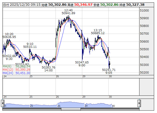日経平均 <5分足> 売買代金 「株探」多機能チャートより個別ではOne ETF 東証REIT指数 <2556> 、MAXIS高利回りJリート上場投信 <1660> 、グローバルX レジデンシャル・J-REIT ETF <2097> 、MAXIS Jリート・コア上場投信 <2517> 、SMDAM Active ETF 日本高配 <2011> など12銘柄が新高値。VIX短期先物指数ETF <318A> が新安値をつけている。