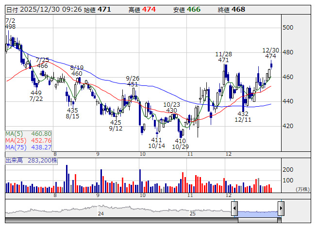 2025年12月30日09時26分 【材料】広済堂HDはしっかり、大株主売却意向で自社株取得 広済堂HD <日足> 「株探」多機能チャートより 広済堂ホールディングス<7868>はしっかり。29日取引終了後、1394万8400株(自己株式を除く発行済み株式総数の9.87%)を上限に、30日朝の東京証券取引所の自己株式立会外買付取引(ToSTNeT-3)で自社株を取得すると発表した。買い付け価格は29日終値の466円。大株主から売却の意向があったため。 東証の自己株式立会外買付取引情報によると、広済堂HDは予定通り買い付けを実施し、1343万9200株を取得した。 出所:MINKABU PRESS