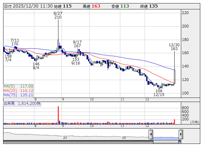 ※12月30日寄付値に対する前場終値の株価上昇率